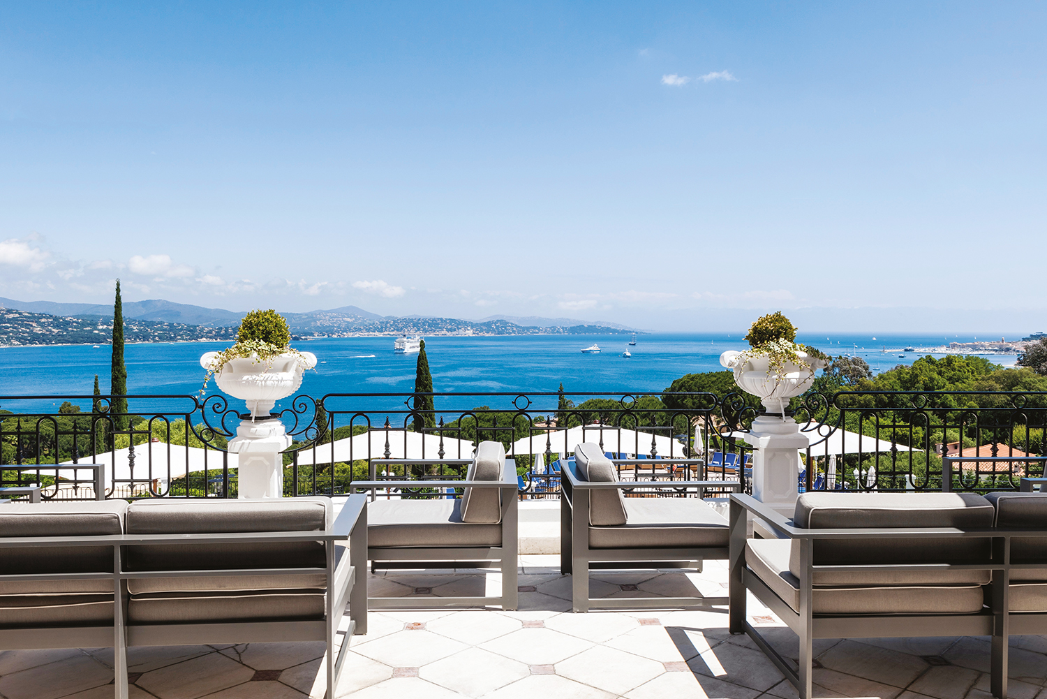 More than 20 years now, perched in its beautiful setting somewhere between the sea and the skies, La Villa Belrose has left its guests spellbound. Up above Gassin, the Althoff Villa Belrose seemingly floats on the blue horizon above the Gulf of Saint-Tropez for outstanding views in a world of luxury and discretion. Surrounded by 9,000m² of pine trees and landscaped gardens the hotel houses 40 guest rooms and suites, each with a private sun deck offering views of the gardens or the bay. The Villa Belrose is also a beauty centre with the latest NIANCE products made in Switzerland, a sports room and heated outdoor pool. To complete the enchanting experience, get a taste of what Chef Pietro Volonté comes up with in “Le Belrose” gourmet restaurant, for something lighter poolside at “Le Petit Belrose” restaurant or on the bar terrace.